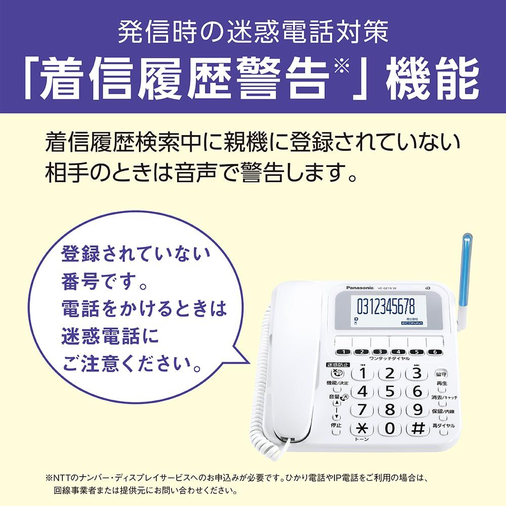 パナソニック デジタルコードレス 電話機 VE-GE19DL-W 迷惑電話 対策機能搭載 シニアモデル ホワイトの検索結果
