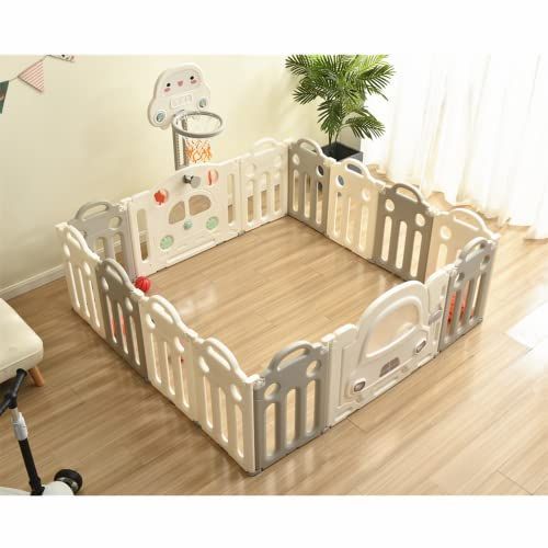 在庫セール プレイヤード ベビーフェンス ベビーゲート おもちゃパネル 簡単組立 バスケットゴール付き 扉付き 変形 柵 163*163cm 14枚セット 折りたたみ キッズ ベビーサークル BTM WWW_CARILOBEACH_COM