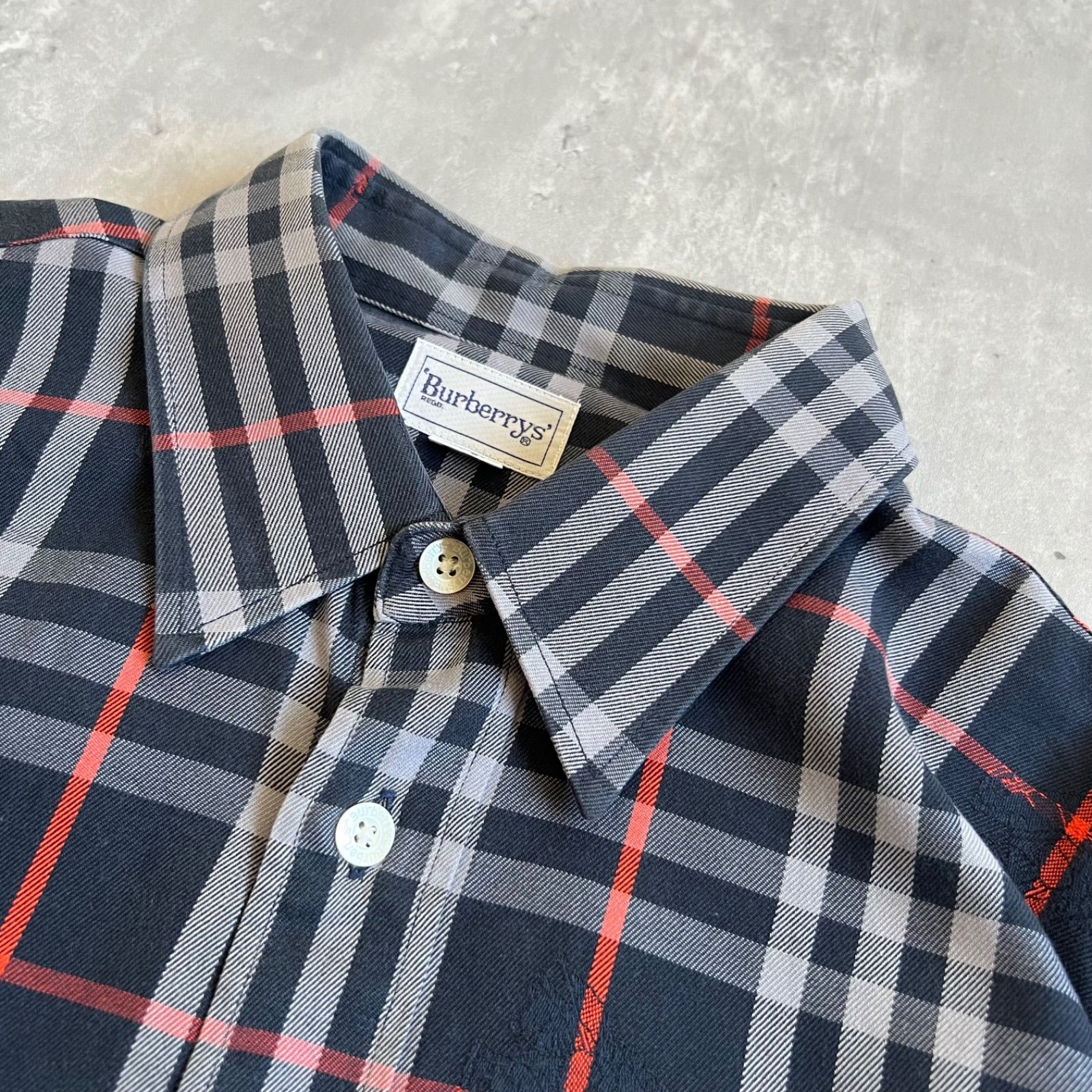 90s Burberry s バーバリーズ シャドウホース総柄 バーバリーチェックシャツ Navy × Orange LサイズWJO48-141の検索結果