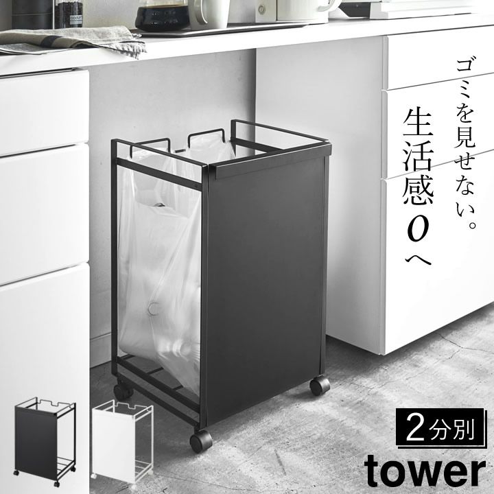 【最大80%OFF】 目隠し分別ダストワゴン タワー 2分別 山崎実業 タワー tower クッチーナ 分別 ゴミ箱 キッチン分別ごみ箱 目隠し 資源ごみ ゴミ 袋 隠せる ダストワゴン レジ袋 ポリ袋 フタなし シンプル 山崎実業 【海外販売】