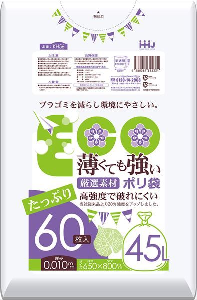 まとめ買い-25点セット 薄くても強いポリ袋45L半透明60枚0 01mm KH56 ハウスホールドジャパンの検索結果