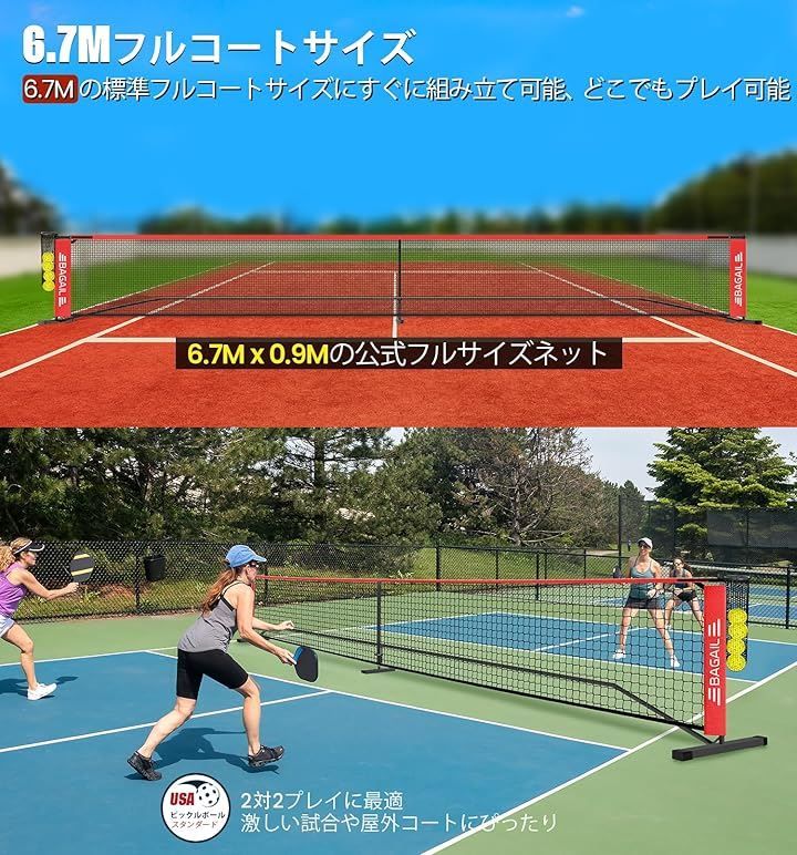 prezon ピックルボールネットアウトドア用 6.7M 22FT規格サイズネット ポータブル 屋外規制サイズ ボールコレクター付き 簡単に組み立て ピックルボール付き キャリングバッグ付き ブラック レッド 6.7M 22FT規格 WWW_CARILOBEACH_COM